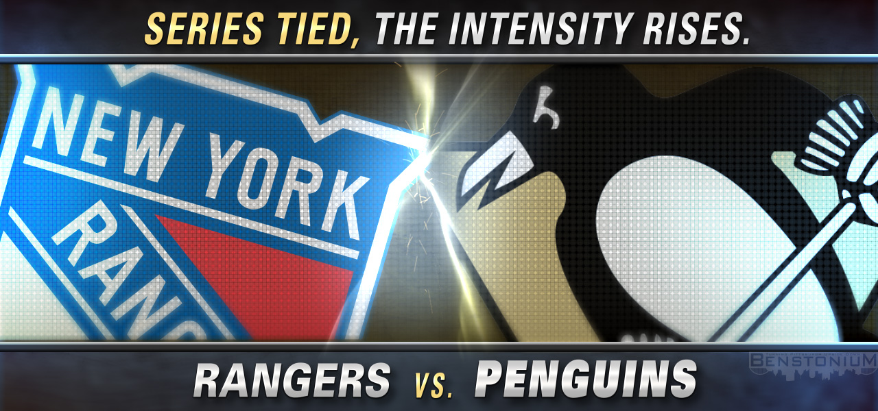 Gameday PostersPenguins PostersPosters10 years ago Pens vs. Rangers – Game 3 Gameday poster for the Pens vs. Rangers, Game 3 matchup. Series tied, the intensity rises. Share N'at Tags Gameday PosterPittsburgh Penguins