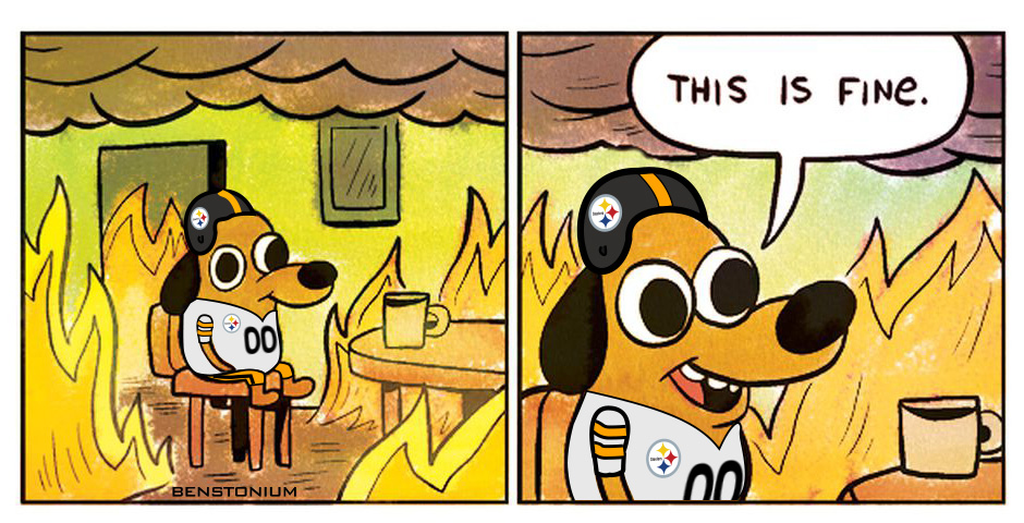 PostersSteelers Posters8 years ago Steelers “This Is Fine” Meme Reviews 0 % User Score 0 ratings Rate This Share N'at Tags PosterSteelers