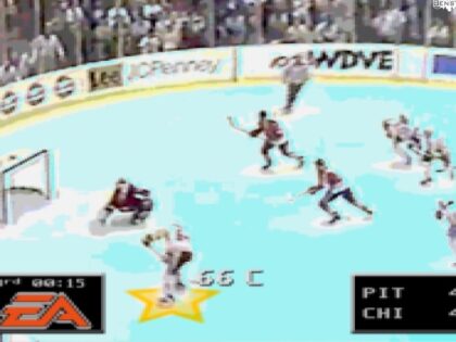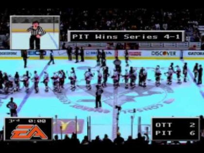 Mario Lemieux’s last-second goal in the 1992 Stanley Cup Finals remixed as the video game NHL ’94.